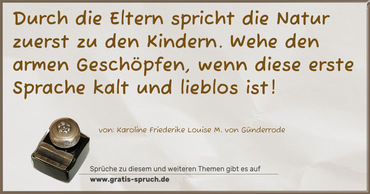 Durch die Eltern spricht die Natur zuerst zu den Kindern. Wehe den armen Geschöpfen, wenn diese erste Sprache kalt und lieblos ist!
