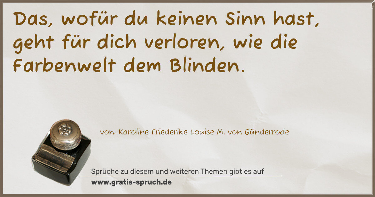Das, wofür du keinen Sinn hast, geht für dich verloren, wie die Farbenwelt dem Blinden.