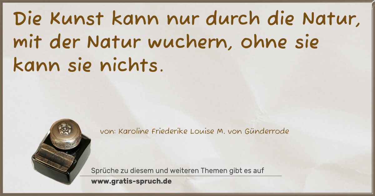 Die Kunst kann nur durch die Natur, mit der Natur wuchern, ohne sie kann sie nichts.