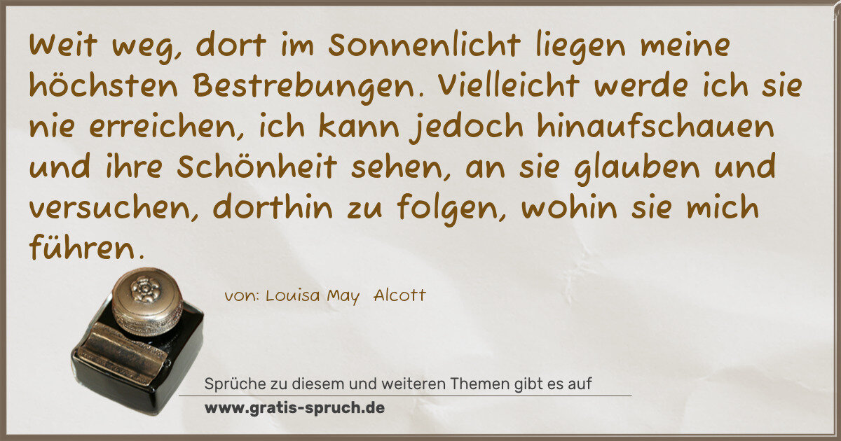 »Weit weg, dort im Sonnenlicht liegen meine höchsten Bestrebungen. Vielleicht werde ich sie nie erreichen, ich kann jedoch hinaufschauen und ihre Schönheit sehen, an sie glauben und versuchen, dorthin zu folgen, wohin sie mich führen.