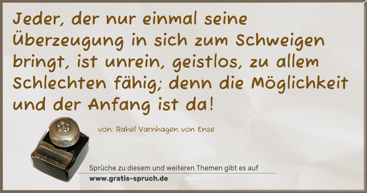»Jeder, der nur einmal seine Überzeugung in sich zum Schweigen bringt, ist unrein, geistlos, zu allem Schlechten fähig; denn die Möglichkeit und der Anfang ist da!