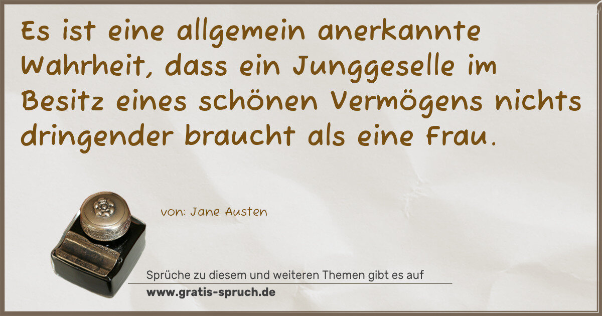 »Es ist eine allgemein anerkannte Wahrheit, dass ein Junggeselle im Besitz eines schönen Vermögens nichts dringender braucht als eine Frau.