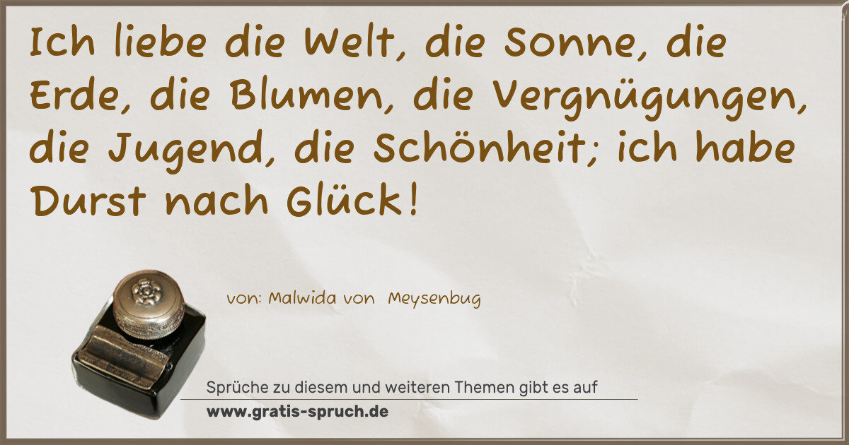 Ich liebe die Welt, die Sonne, die Erde, die Blumen, die Vergnügungen, die Jugend, die Schönheit; ich habe Durst nach Glück!