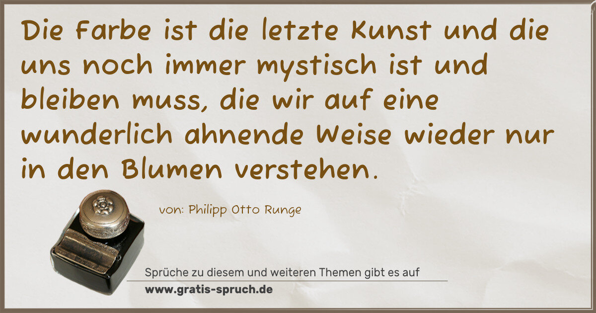 »Die Farbe ist die letzte Kunst und die uns noch immer mystisch ist und bleiben muss, die wir auf eine wunderlich ahnende Weise wieder nur in den Blumen verstehen.