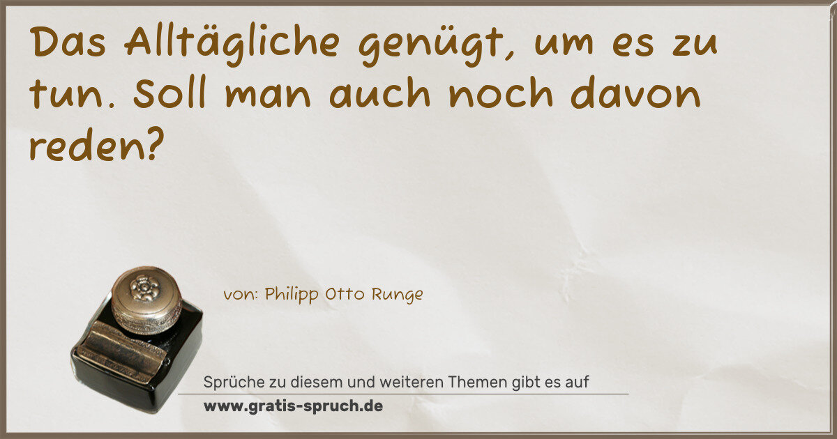 Das Alltägliche genügt, um es zu tun. Soll man auch noch davon reden?