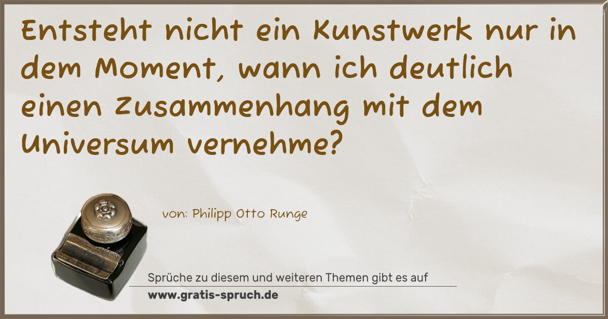 Entsteht nicht ein Kunstwerk nur in dem Moment, wann ich deutlich einen Zusammenhang mit dem Universum vernehme?