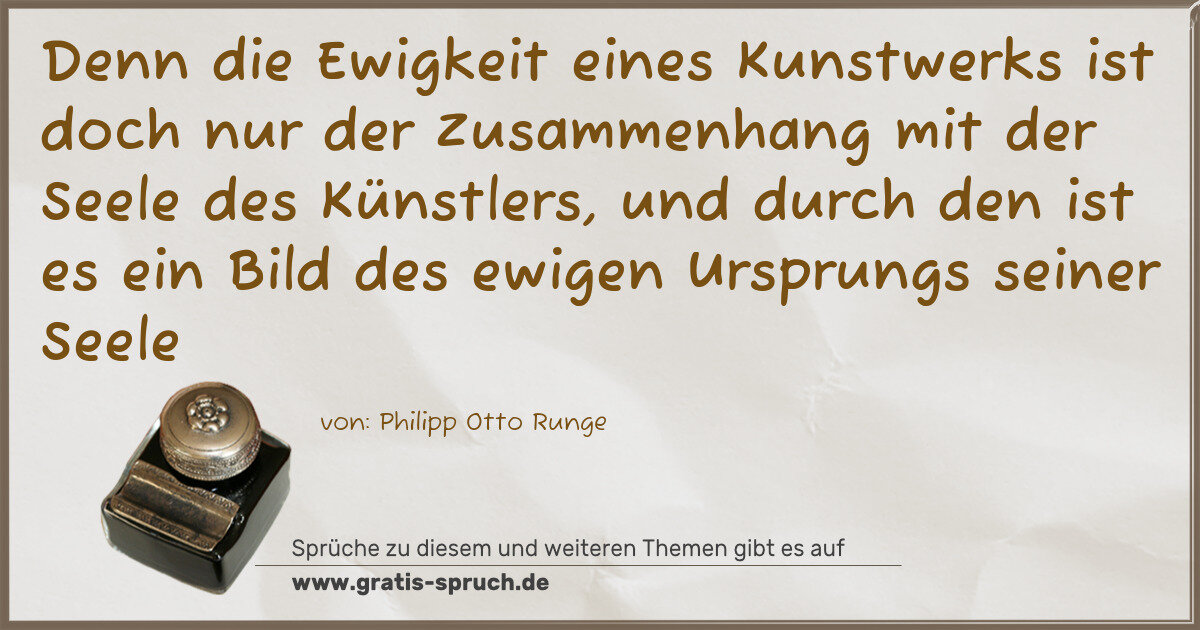 »Denn die Ewigkeit eines Kunstwerks ist doch nur der Zusammenhang mit der Seele des Künstlers, und durch den ist es ein Bild des ewigen Ursprungs seiner Seele