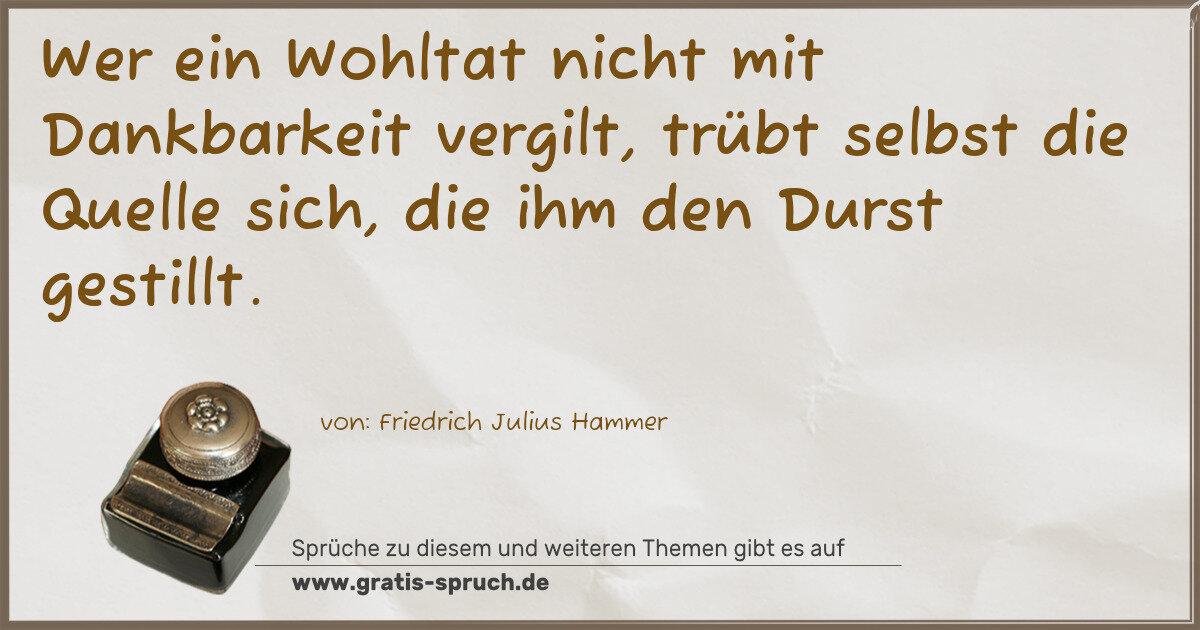 Wer ein Wohltat nicht mit Dankbarkeit vergilt, trübt selbst die Quelle sich, die ihm den Durst gestillt.