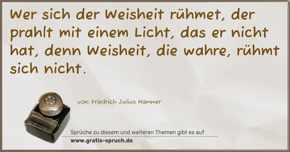 Wer sich der Weisheit rühmet, der prahlt mit einem Licht, das er nicht hat, denn Weisheit, die wahre, rühmt sich nicht.
