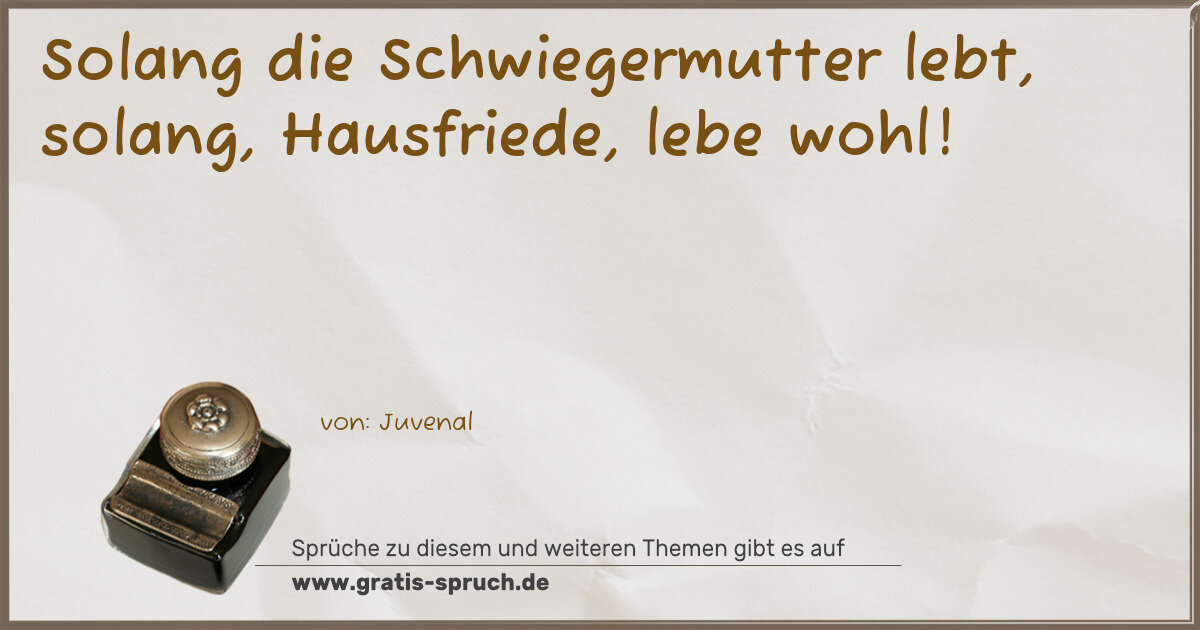 Solang die Schwiegermutter lebt, solang, Hausfriede, lebe wohl!