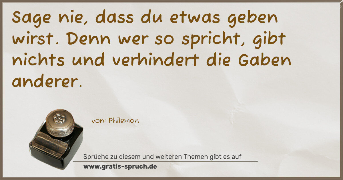 Sage nie, dass du etwas geben wirst. Denn wer so spricht, gibt nichts und verhindert die Gaben anderer.