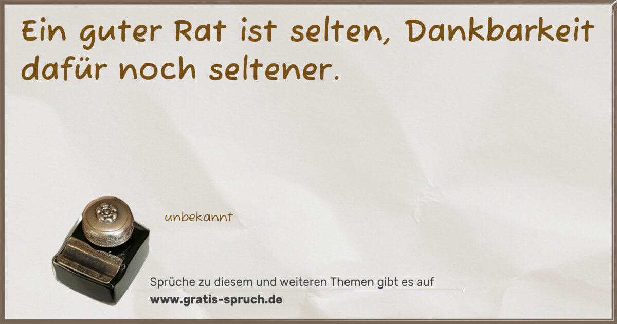 Ein guter Rat ist selten, Dankbarkeit dafür noch seltener.