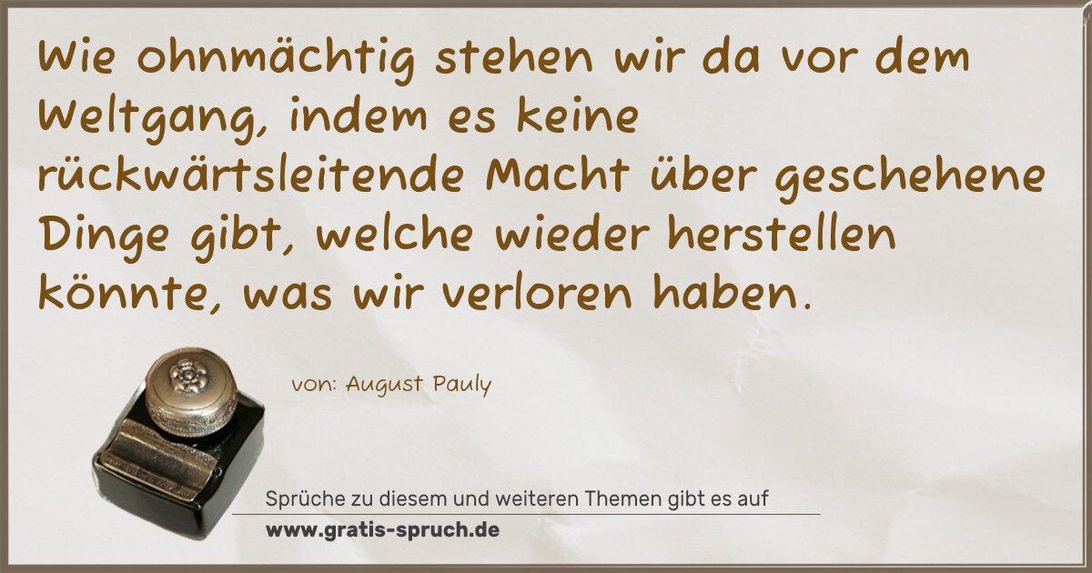indem es keine rückwärtsleitende Macht über geschehene Dinge gibt, welche wieder herstellen könnte, was wir verloren haben.