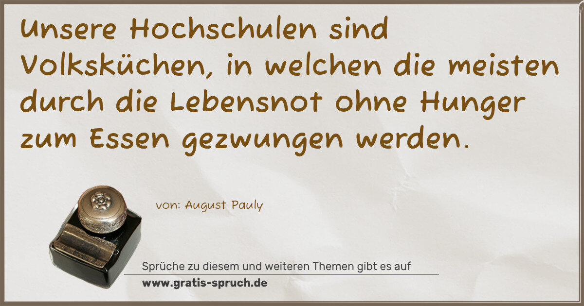 Unsere Hochschulen sind Volksküchen, in welchen die meisten durch die Lebensnot ohne Hunger zum Essen gezwungen werden.