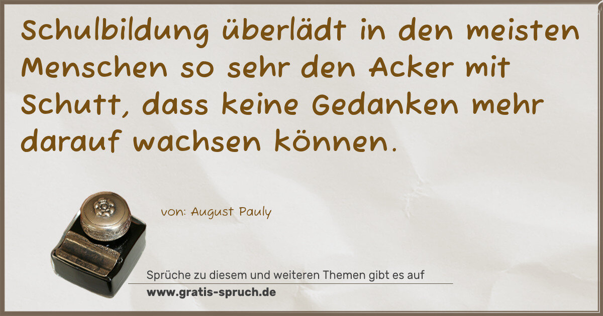 Schulbildung überlädt in den meisten Menschen so sehr den Acker mit Schutt, dass keine Gedanken mehr darauf wachsen können.