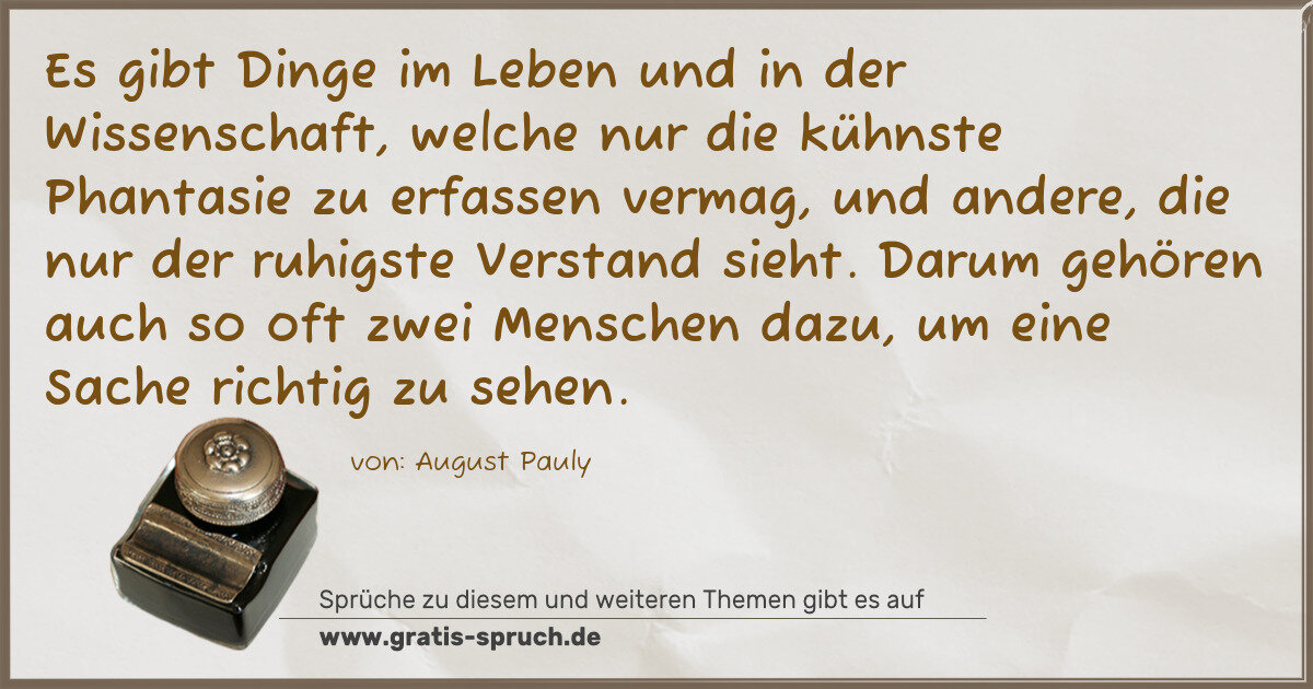 »Es gibt Dinge im Leben und in der Wissenschaft, welche nur die kühnste Phantasie zu erfassen vermag, und andere, die nur der ruhigste Verstand sieht. Darum gehören auch so oft zwei Menschen dazu, um eine Sache richtig zu sehen.