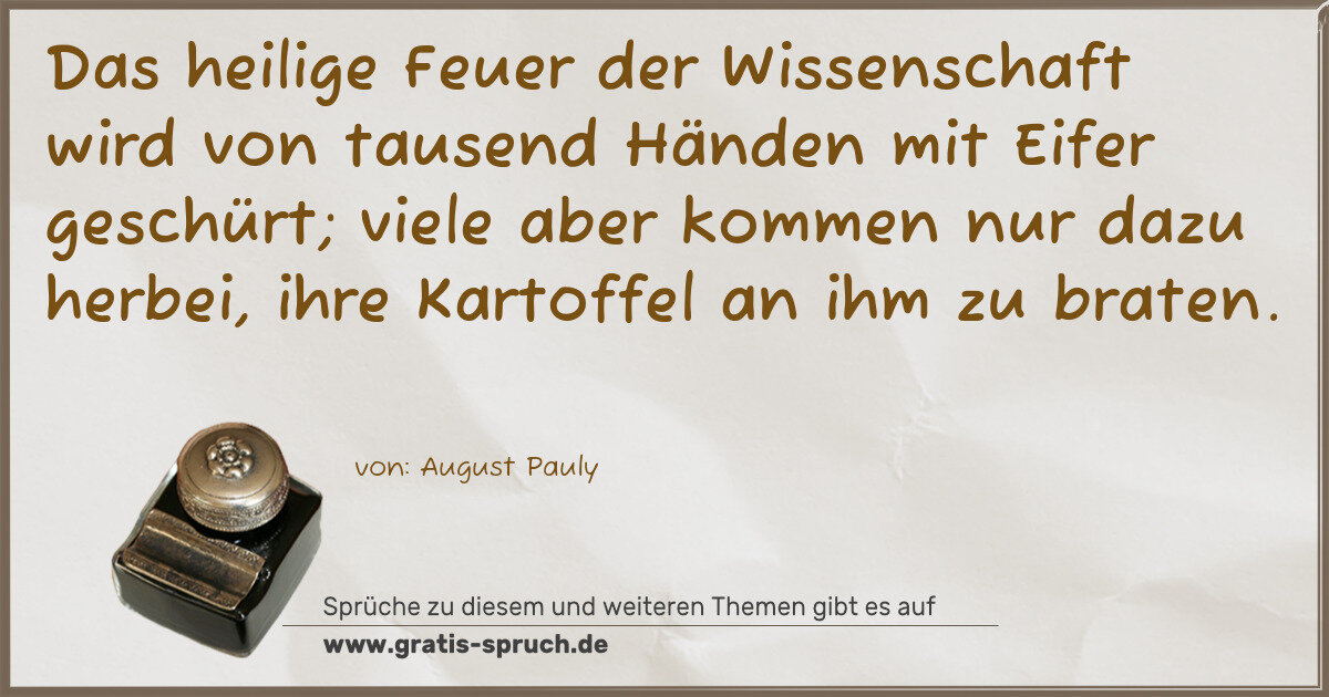 »Das heilige Feuer der Wissenschaft wird von tausend Händen mit Eifer geschürt; viele aber kommen nur dazu herbei, ihre Kartoffel an ihm zu braten.