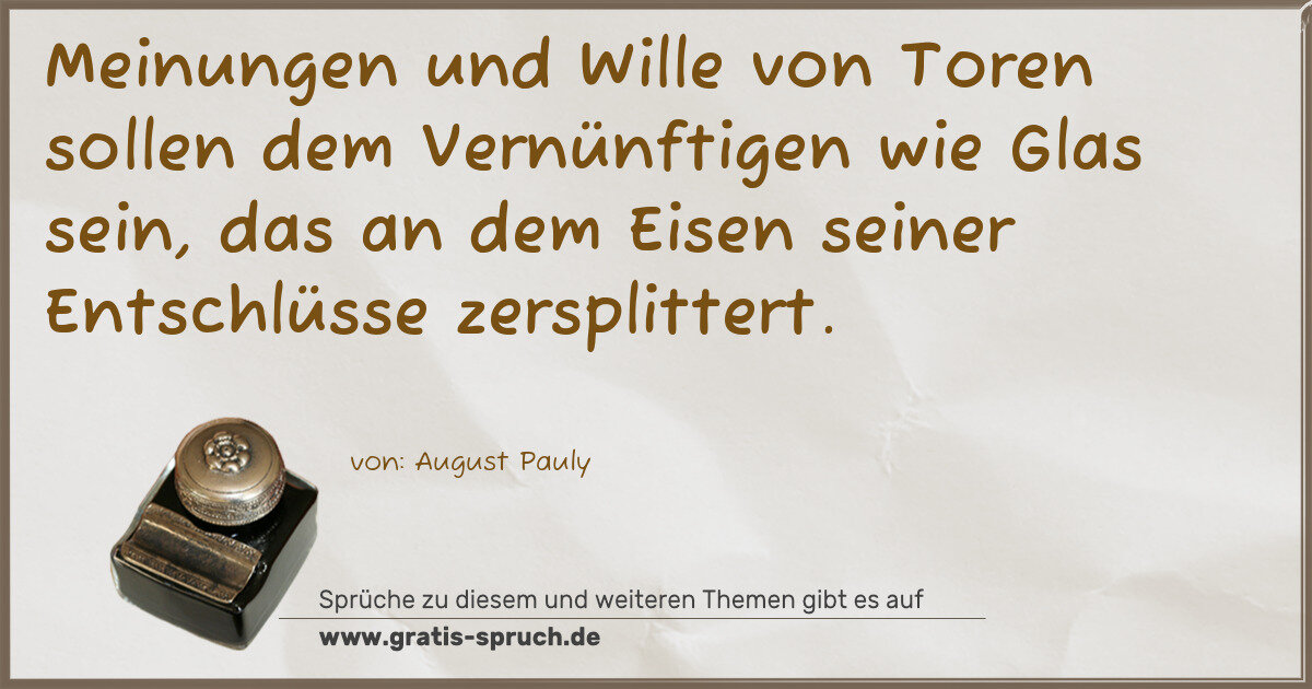 Meinungen und Wille von Toren sollen dem Vernünftigen wie Glas sein, das an dem Eisen seiner Entschlüsse zersplittert.