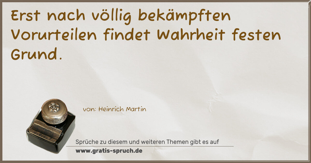 Erst nach völlig bekämpften Vorurteilen findet Wahrheit festen Grund.