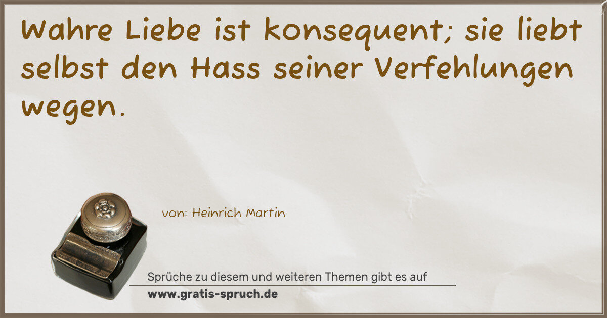 Wahre Liebe ist konsequent; sie liebt selbst den Hass seiner Verfehlungen wegen.