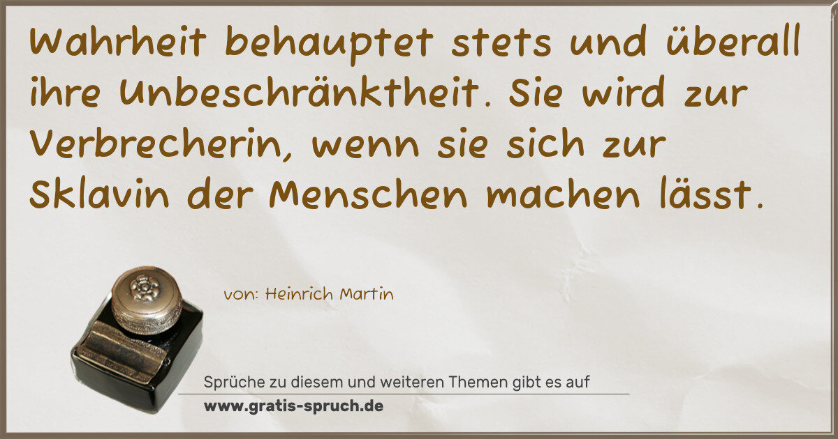 Wahrheit behauptet stets und überall ihre Unbeschränktheit. Sie wird zur Verbrecherin, wenn sie sich zur Sklavin der Menschen machen lässt.