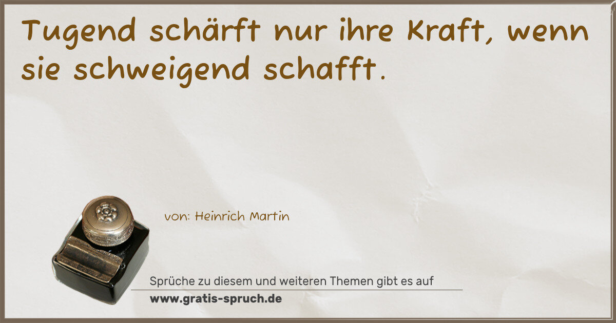 Tugend schärft nur ihre Kraft, wenn sie schweigend schafft.