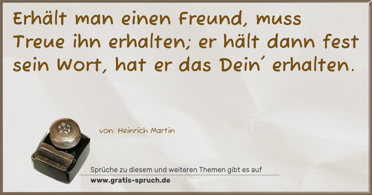 Erhält man einen Freund, muss Treue ihn erhalten; er hält dann fest sein Wort, hat er das Dein' erhalten.