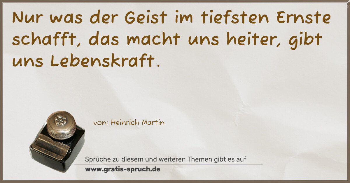 Nur was der Geist im tiefsten Ernste schafft, das macht uns heiter, gibt uns Lebenskraft.