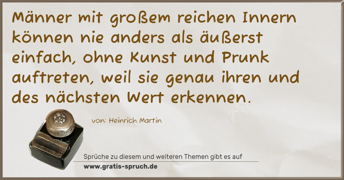 »Männer mit großem reichen Innern können nie anders als äußerst einfach, ohne Kunst und Prunk auftreten, weil sie genau ihren und des nächsten Wert erkennen.