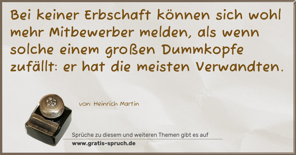 »Bei keiner Erbschaft können sich wohl mehr Mitbewerber melden, als wenn solche einem großen Dummkopfe zufällt: er hat die meisten Verwandten.