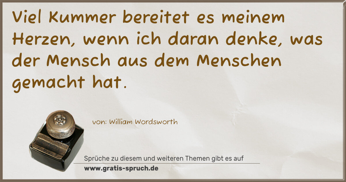 Viel Kummer bereitet es meinem Herzen, wenn ich daran denke, was der Mensch aus dem Menschen gemacht hat.