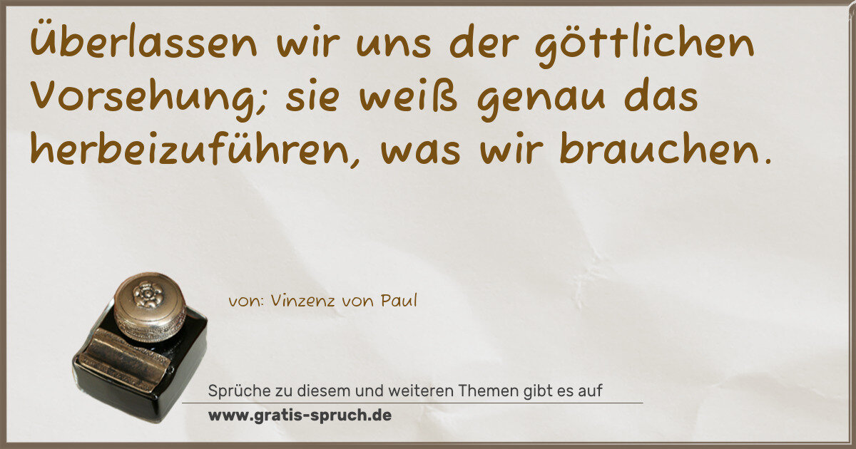 Überlassen wir uns der göttlichen Vorsehung; sie weiß genau das herbeizuführen, was wir brauchen.