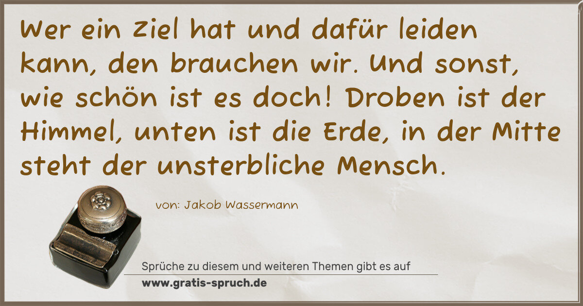 »Wer ein Ziel hat und dafür leiden kann, den brauchen wir. Und sonst, wie schön ist es doch! Droben ist der Himmel, unten ist die Erde, in der Mitte steht der unsterbliche Mensch.