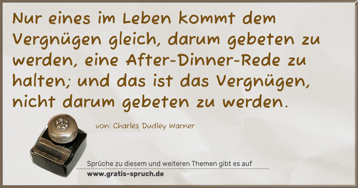 »Nur eines im Leben kommt dem Vergnügen gleich, darum gebeten zu werden, eine After-Dinner-Rede zu halten; und das ist das Vergnügen, nicht darum gebeten zu werden.