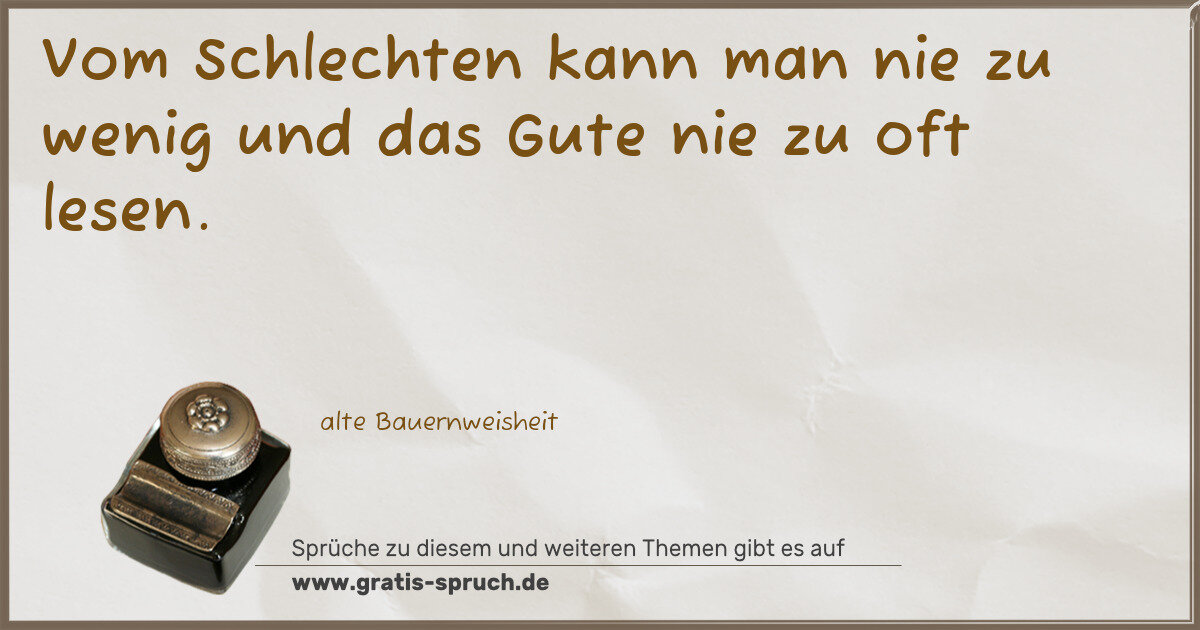 Vom Schlechten kann man nie zu wenig und das Gute nie zu oft lesen.