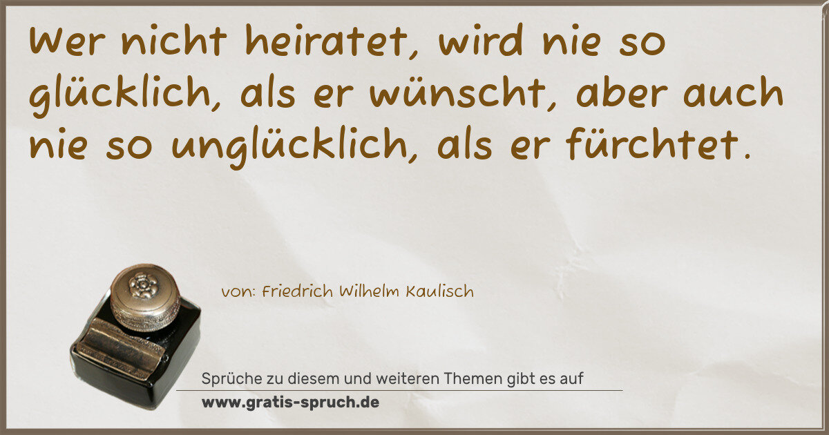 Wer nicht heiratet, wird nie so glücklich, als er wünscht, aber auch nie so unglücklich, als er fürchtet.