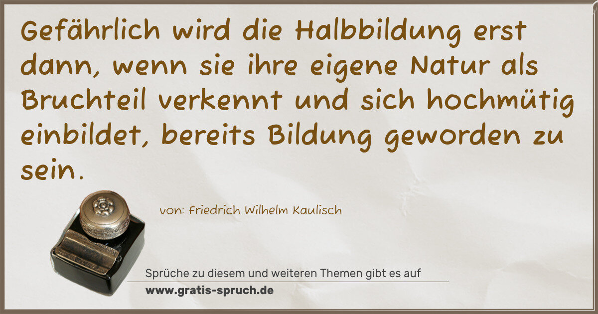 »Gefährlich wird die Halbbildung erst dann, wenn sie ihre eigene Natur als Bruchteil verkennt und sich hochmütig einbildet, bereits Bildung geworden zu sein.