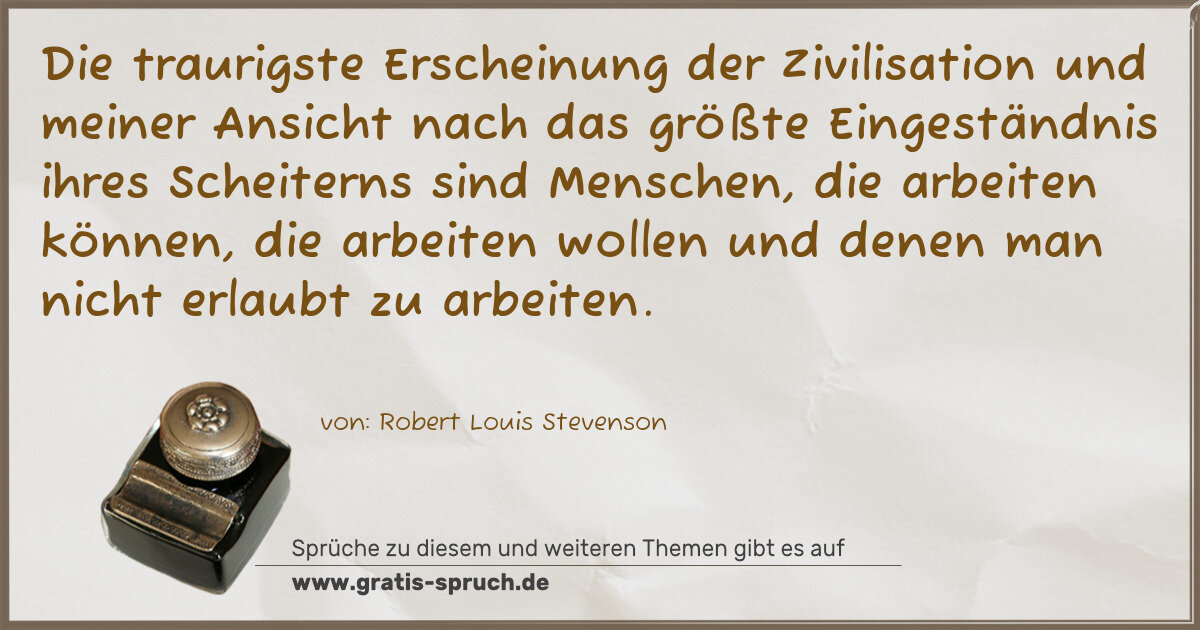 »Die traurigste Erscheinung der Zivilisation und meiner Ansicht nach das größte Eingeständnis ihres Scheiterns sind Menschen, die arbeiten können, die arbeiten wollen und denen man nicht erlaubt zu arbeiten.