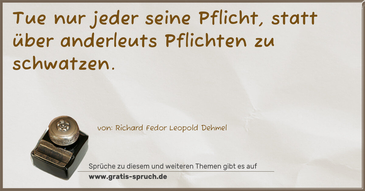 Tue nur jeder seine Pflicht, statt über anderleuts Pflichten zu schwatzen.