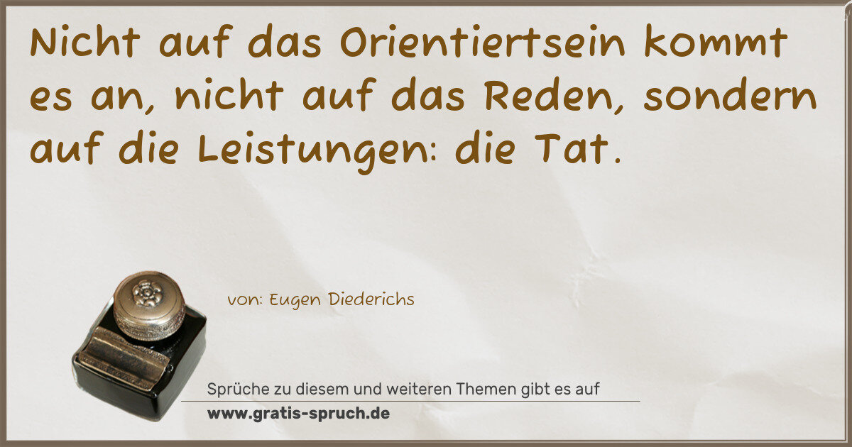 Nicht auf das Orientiertsein kommt es an, nicht auf das Reden, sondern auf die Leistungen: die Tat.