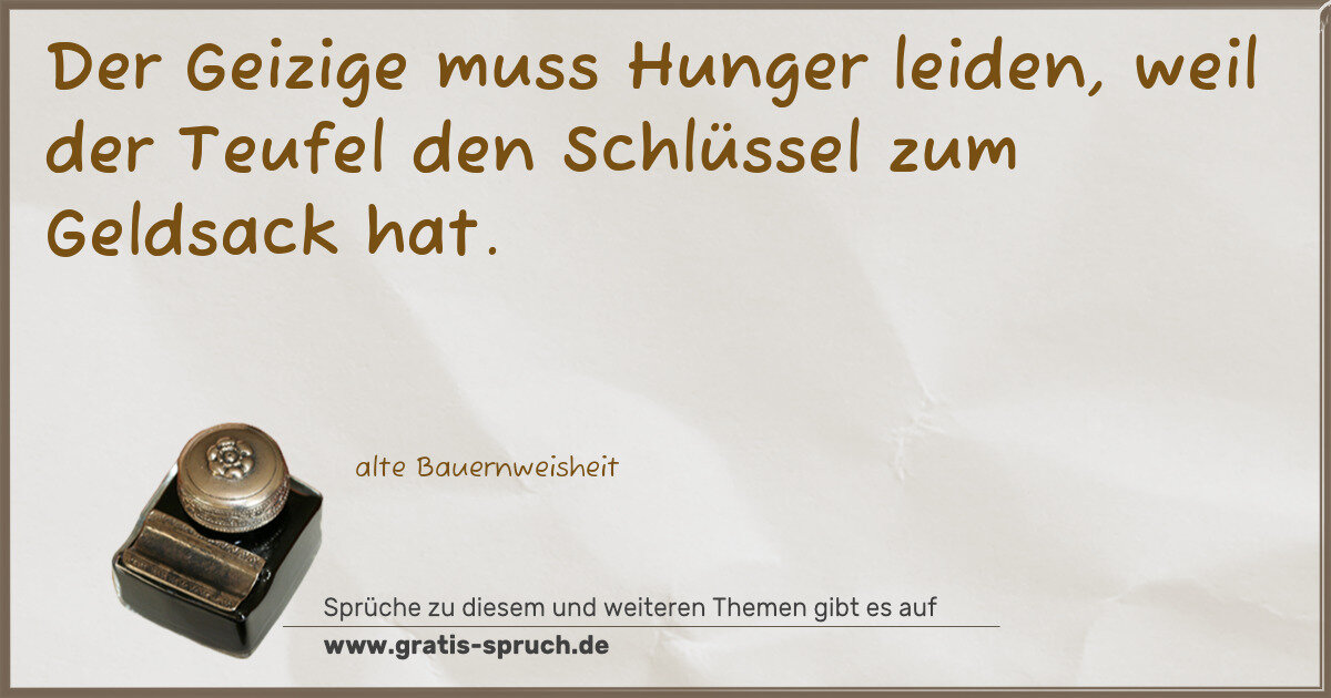 Der Geizige muss Hunger leiden, weil der Teufel den Schlüssel zum Geldsack hat.