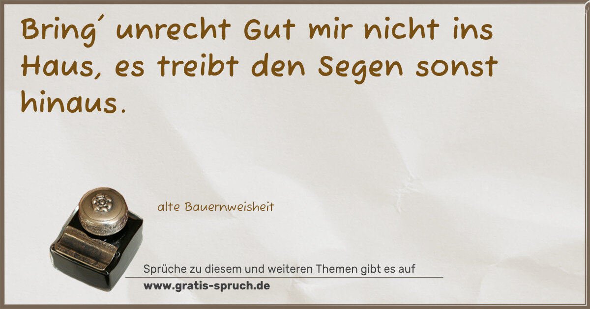Bring' unrecht Gut mir nicht ins Haus, es treibt den Segen sonst hinaus.