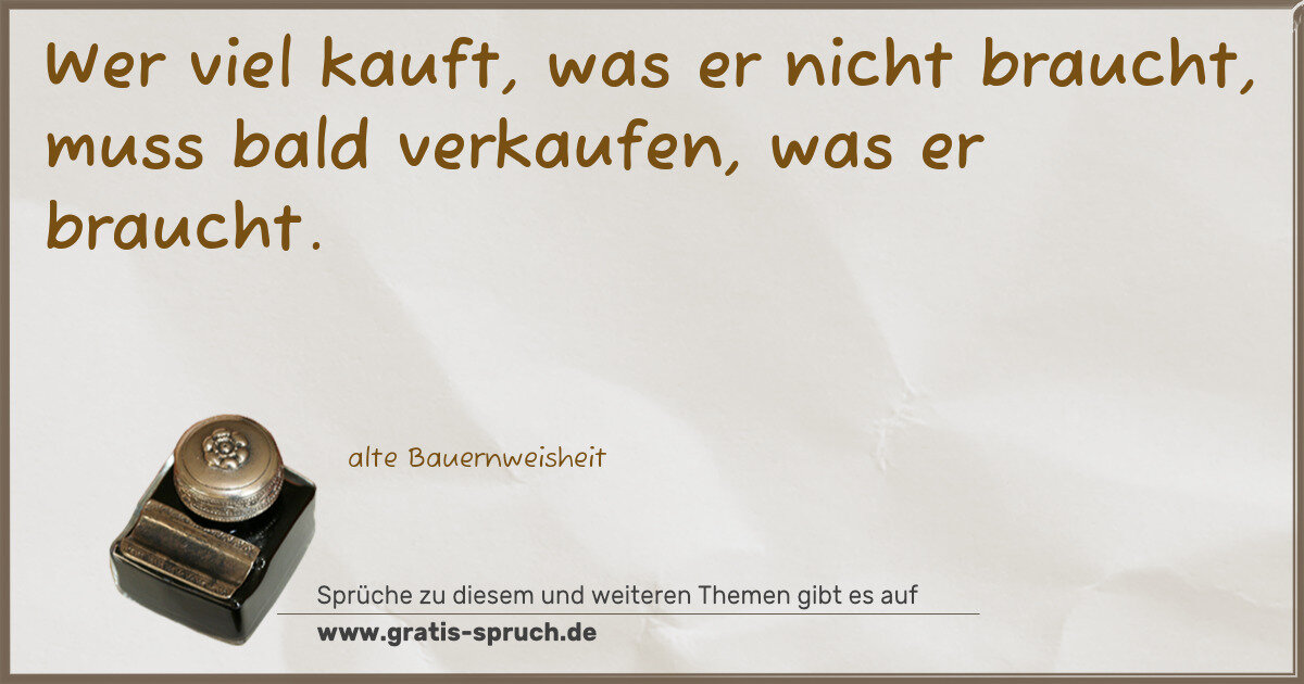 Wer viel kauft, was er nicht braucht, muss bald verkaufen, was er braucht.