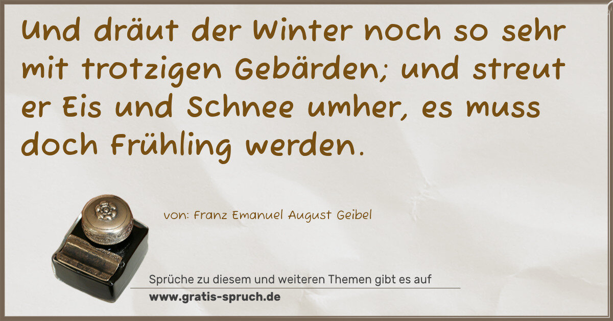 Und dräut der Winter noch so sehr mit trotzigen Gebärden; und streut er Eis und Schnee umher, es muss doch Frühling werden.