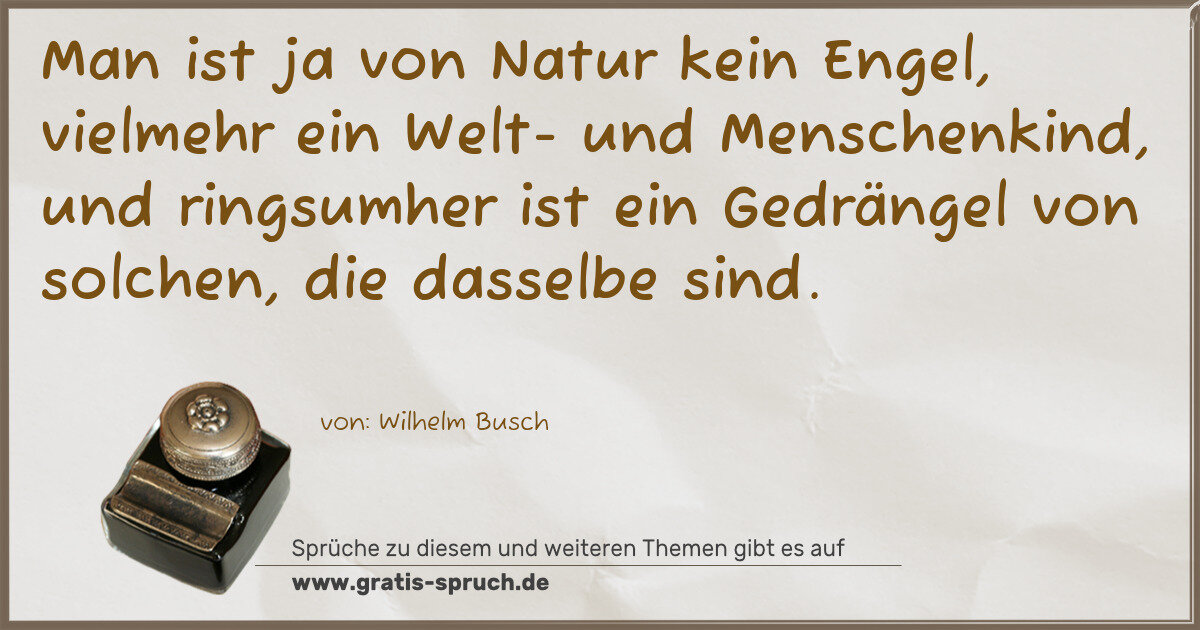Man ist ja von Natur kein Engel, vielmehr ein Welt- und Menschenkind, und ringsumher ist ein Gedrängel von solchen, die dasselbe sind.