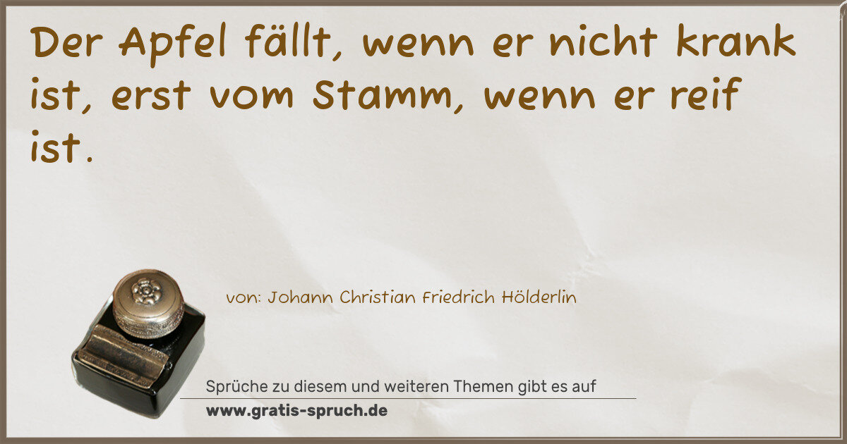 Der Apfel fällt, wenn er nicht krank ist, erst vom Stamm, wenn er reif ist.