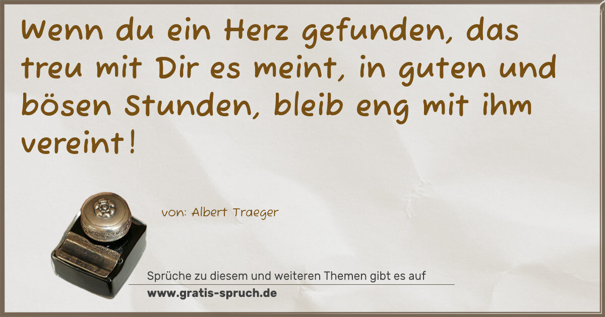 Wenn du ein Herz gefunden, das treu mit Dir es meint, in guten und bösen Stunden, bleib eng mit ihm vereint!