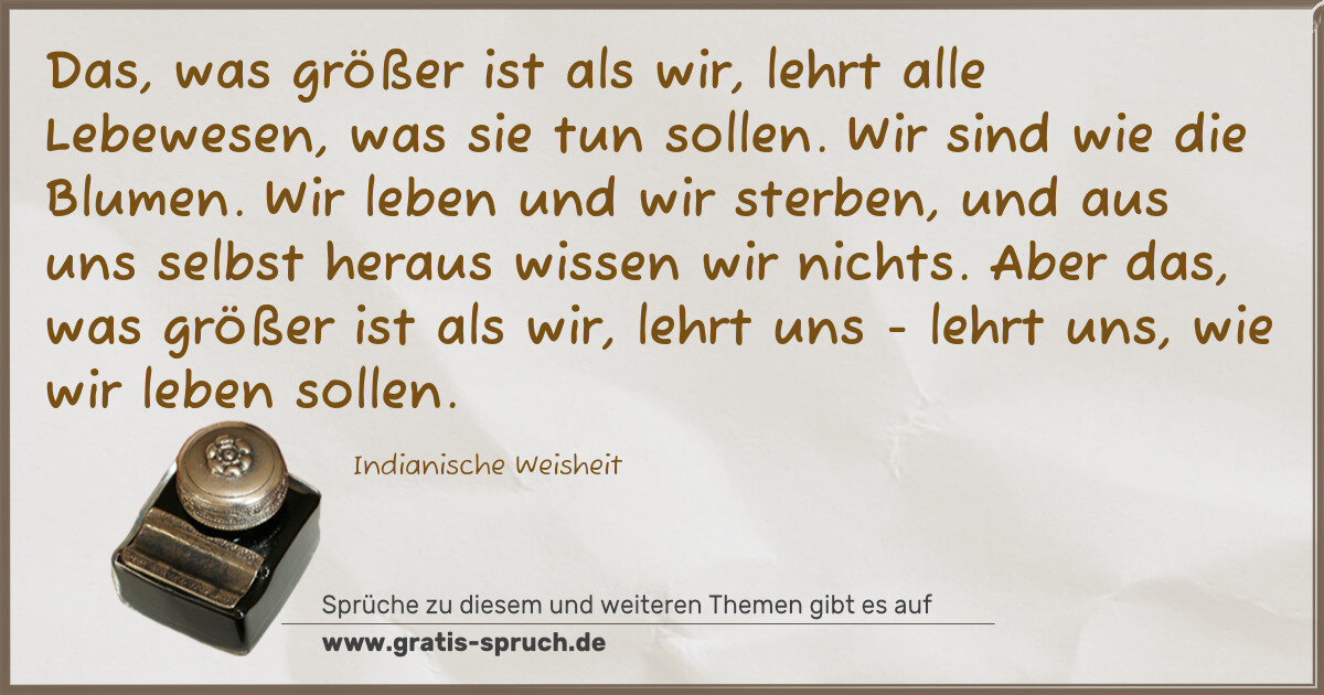 »Das, was größer ist als wir, lehrt alle Lebewesen, was sie tun sollen. Wir sind wie die Blumen. Wir leben und wir sterben,