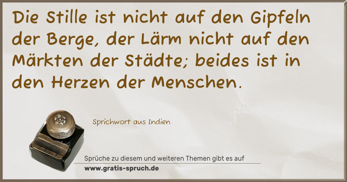Die Stille ist nicht auf den Gipfeln der Berge, der Lärm nicht auf den Märkten der Städte; beides ist in den Herzen der Menschen.