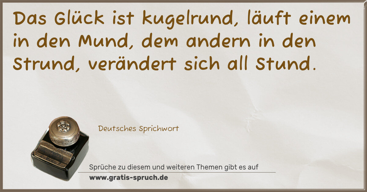 Das Glück ist kugelrund, läuft einem in den Mund, dem andern in den Strund, verändert sich all Stund.